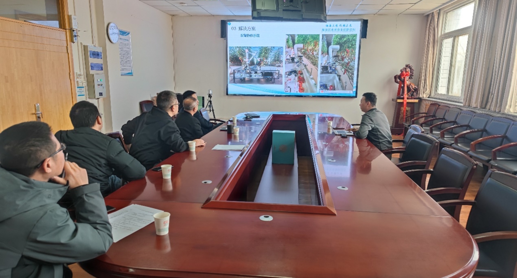 会上,黄铝文对校友来院交流表示热烈欢迎,向校友介绍了学院近年来的发展概况,并重点介绍了在科研领域取得的新进展。孟凡昌简要介绍了世纪智机公司的概况,重点介绍了其在机器人采收技术方面的研发进展与成果。