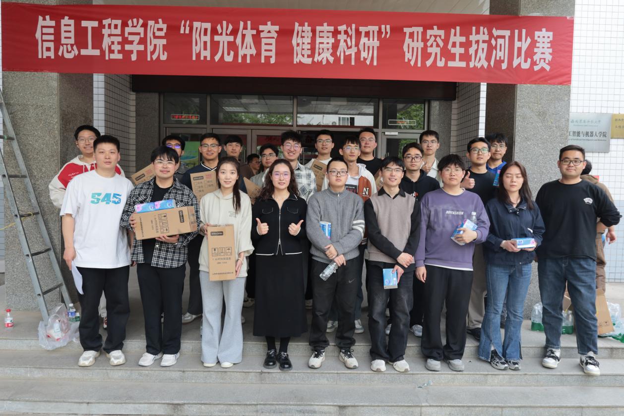 为丰富研究生课余文化生活,缓解科研压力,增强班级凝聚力与团队协作精神,4月10日下午,学院成功举办了春季研究生拔河比赛,比赛以研究生班级为单位进行。全院研究生班级踊跃参赛,在绳索的拉扯与呐喊声中,展现了信息学子团结奋进、拼搏向上的青春风采。辅导员杨若兰也来到现场,并加入同学们的拔河队伍中,与大家并肩作战,进一步点燃了现场的热情。