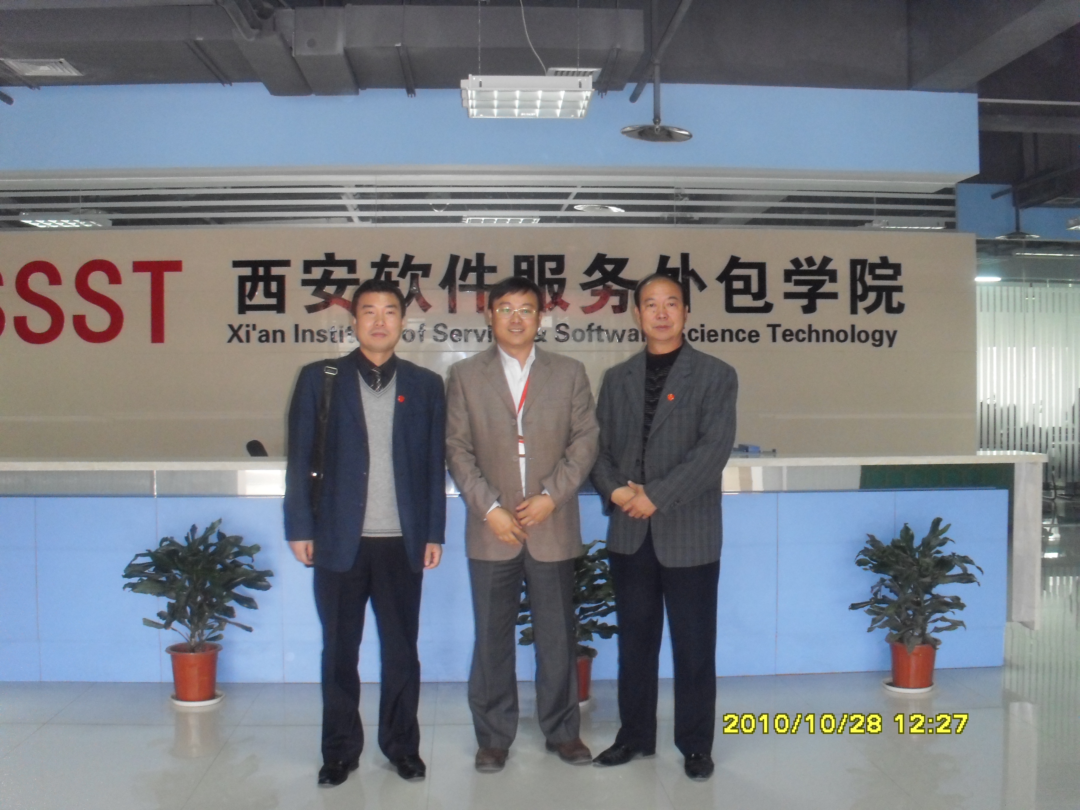 与西安软件服务外包学院的负责同志合影留念